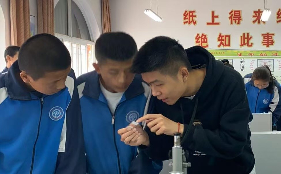 第23届研究生支教团成员远赴宁夏固原三营中学支教一年。期间,他担任300余名学生的生物老师,每周承担20课时的高强度教学工作。面对实验器材匮乏的困境,他迎难而上,一对一指导学生进行生物会考实验,最终助力所教班级在阶段性考试中斩获第一、二、四名的优异成绩,荣获学校表扬嘉奖。