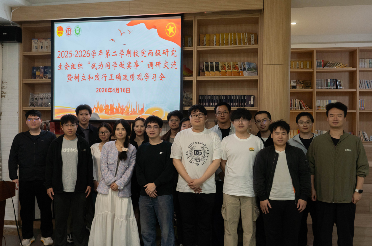 春雨润新程,服务暖人心!四月淅沥的春雨,晕染了校园的满园新绿,新学期的征程也在绵绵春意中稳步前行。为深入落实“我为同学办实事”的服务初心,切实回应广大学子开学阶段的各类需求与期盼,2026年4月16日,校研究生会与院研究生会负责人以及各部门代表相聚学院青年马克思主义研读社,联合举办 2025-2026学年第二学期校院两级研究生会组织“我为同学做实事”调研会。