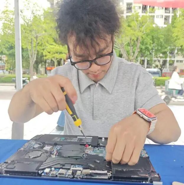 活动现场秩序井然,志愿者们提前到场,分工明确、各司其职。引导组认真登记师生信息及设备问题,咨询组耐心解答电脑使用疑惑,维修组以扎实的专业技能和规范操作,贴心开展维修服务。全程规范签署服务知情同意书,切实保障师生设备与数据安全。