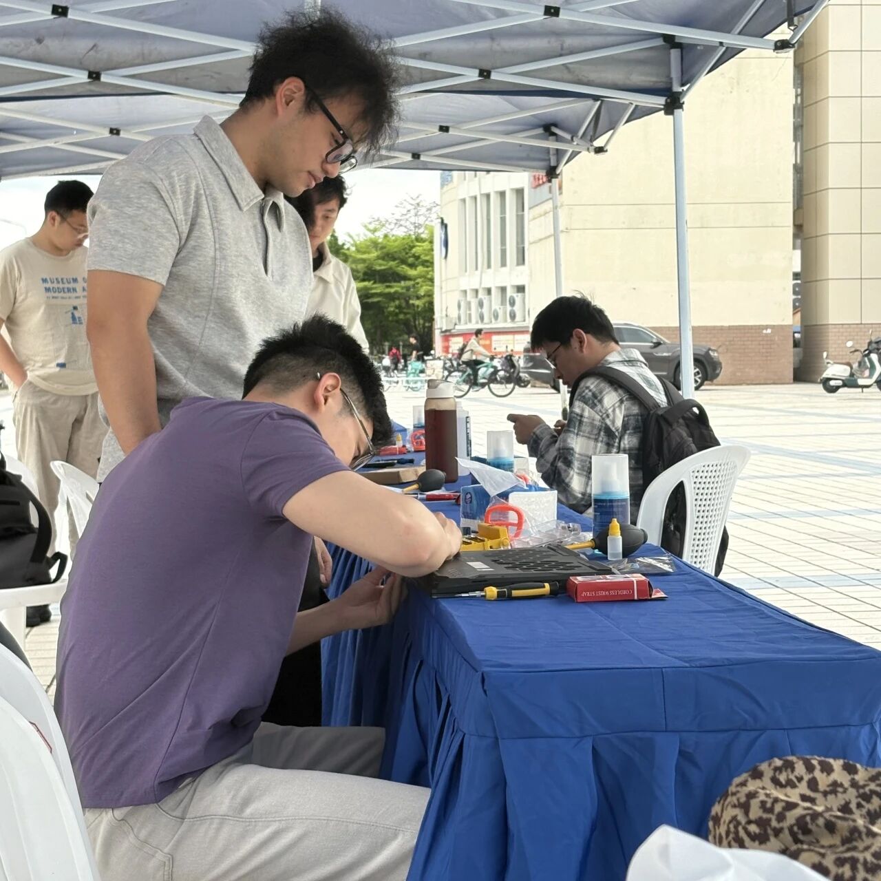 研究生会于旗山校区青春广场,顺利开展“‘红’扬五四薪火,‘电’燃服务真情”义务电脑维修志愿服务活动。