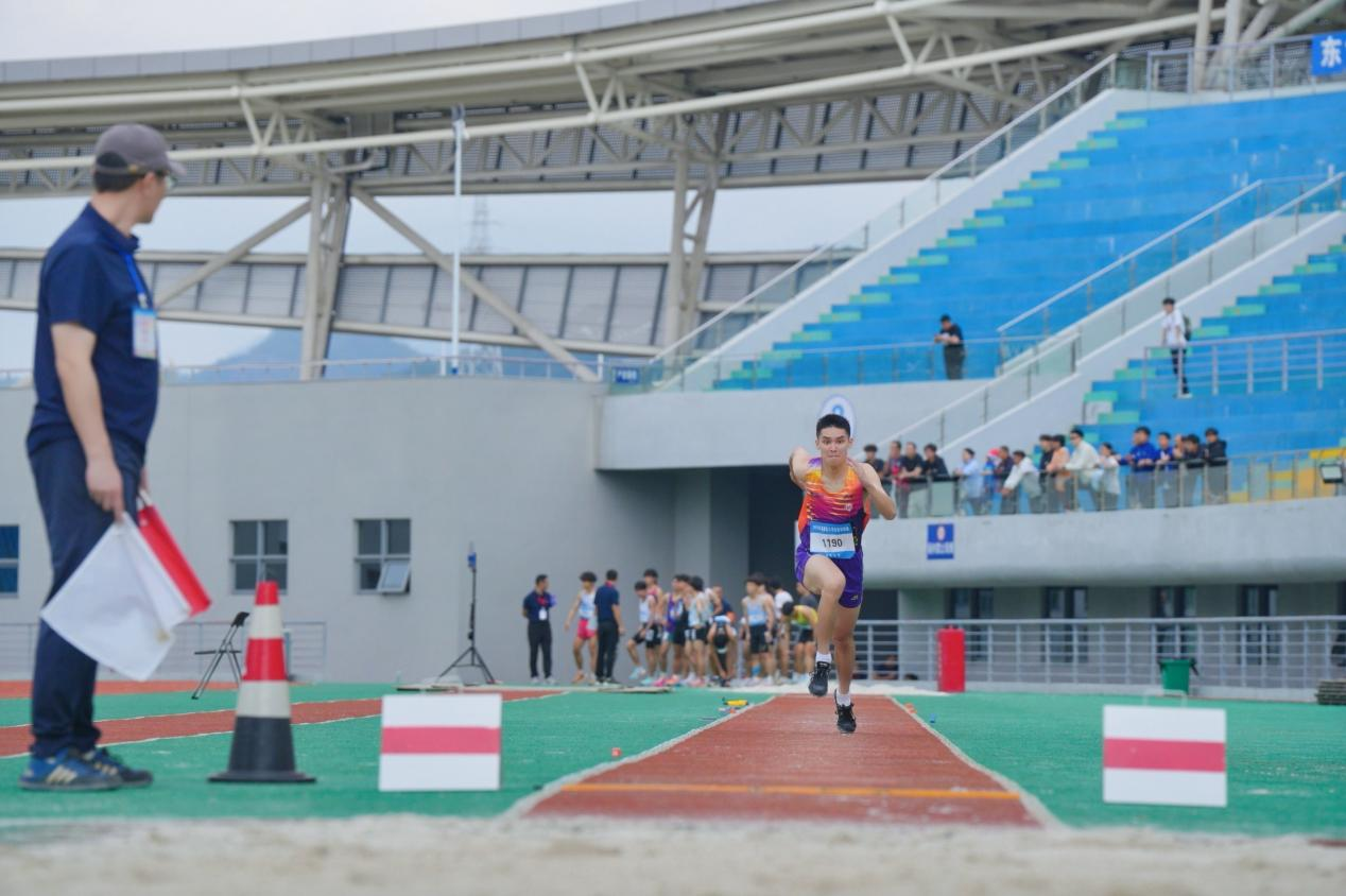 2022级本科生杨天在男子甲组110米栏决赛和男子甲组跳高决赛中获得双料冠军!2023级本科生王培烽、2024级本科生温欧瑞在男子甲组跳远决赛中包揽金牌与铜牌的新突破!2023级王培烽同学在男子甲组100米决赛中获得第八名的好成绩!2024级本科生温欧瑞在男子甲组三级跳远决赛中获得第六名的好成绩!