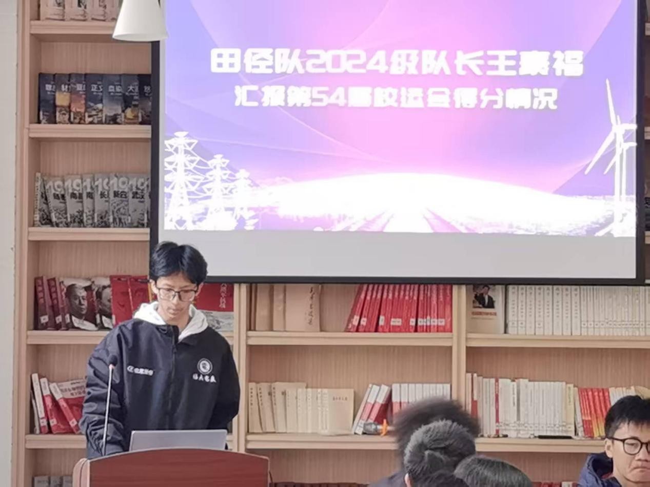 随后,田径队2024级队长王豪福汇报了本届校运会的得分情况,清晰地展现了团队在各项目中的诸多成果:在本届校运会中,成人导航