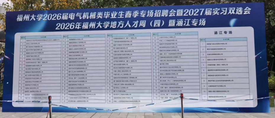 、机械工程及自动化学院联合承办的2026届电气机械类毕业生春季专场招聘会暨2027届实习双选会在旗山校区晋江楼广场举行。