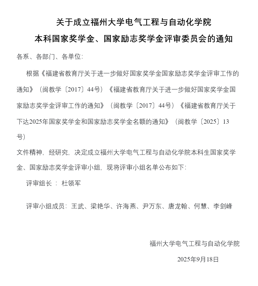 关于成立成人导航 本科国家奖学金、国家励志奖学金评审委员会的通知