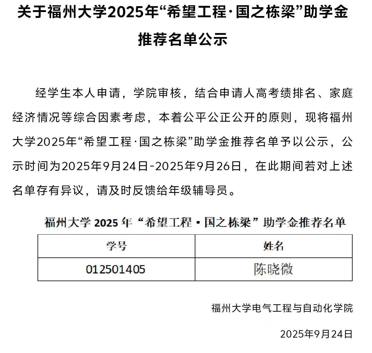 关于成人导航 2025年“希望工程·国之栋梁”助学金推荐名单公示