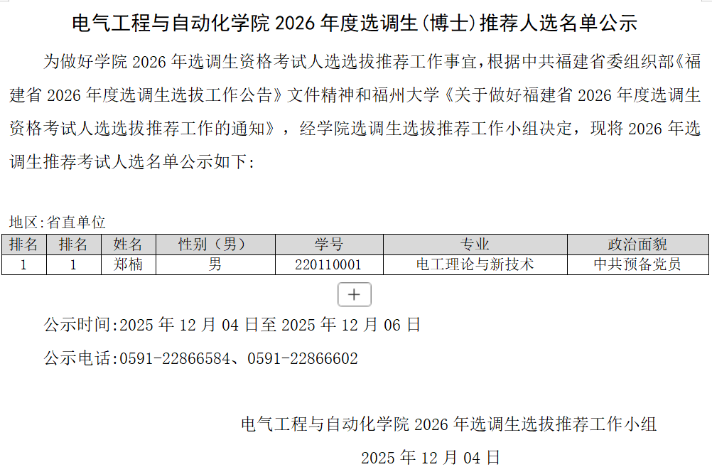 成人导航 2026年度选调生(博士)推荐人选名单公示
