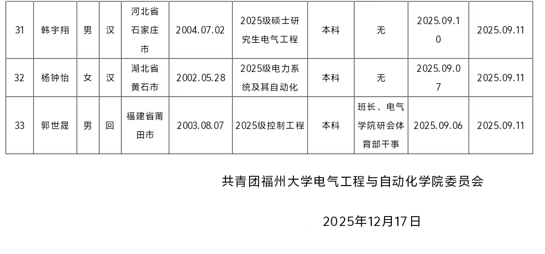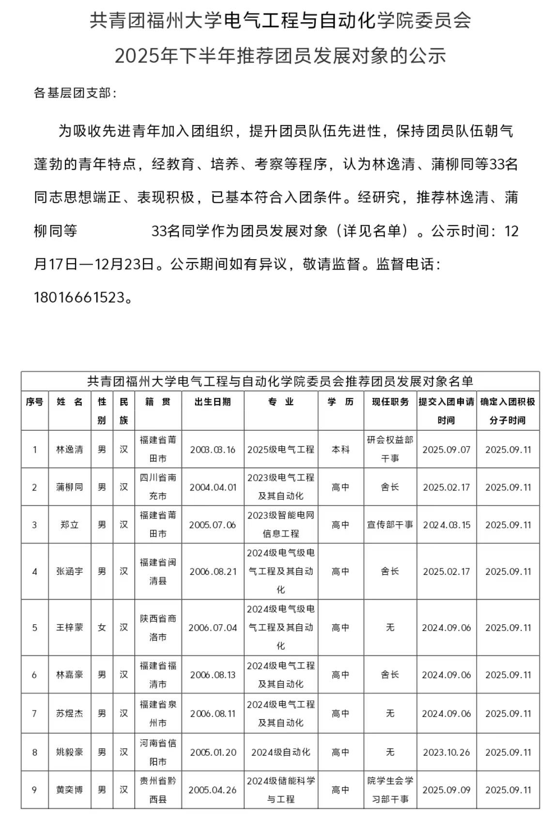 共青团成人导航 委员会 2025年下半年推荐团员发展对象的公示