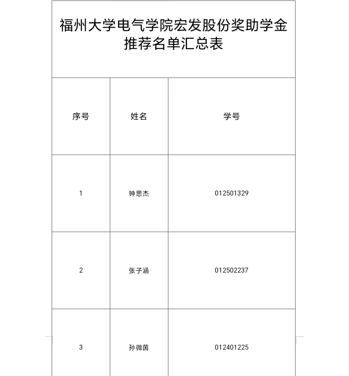 经学生本人申请,年级辅导员审核,学院学生资助工作小组成员讨论,结合各年级申请人年度成绩排名、综合测评、科研竞赛、所获奖助以及家庭经济情况等综合因素考虑,本着公平公正公开的原则,现学院学生资助工作小组决定推荐钟思杰等30名同学参与成人导航 2025年电气学院“宏发股份奖助学金”的评选。现予以公示,公示时间为2025年12月19日-2025年12月23日,在此期间若对上述名单存有异议,请及时反馈给各年级辅导员。
